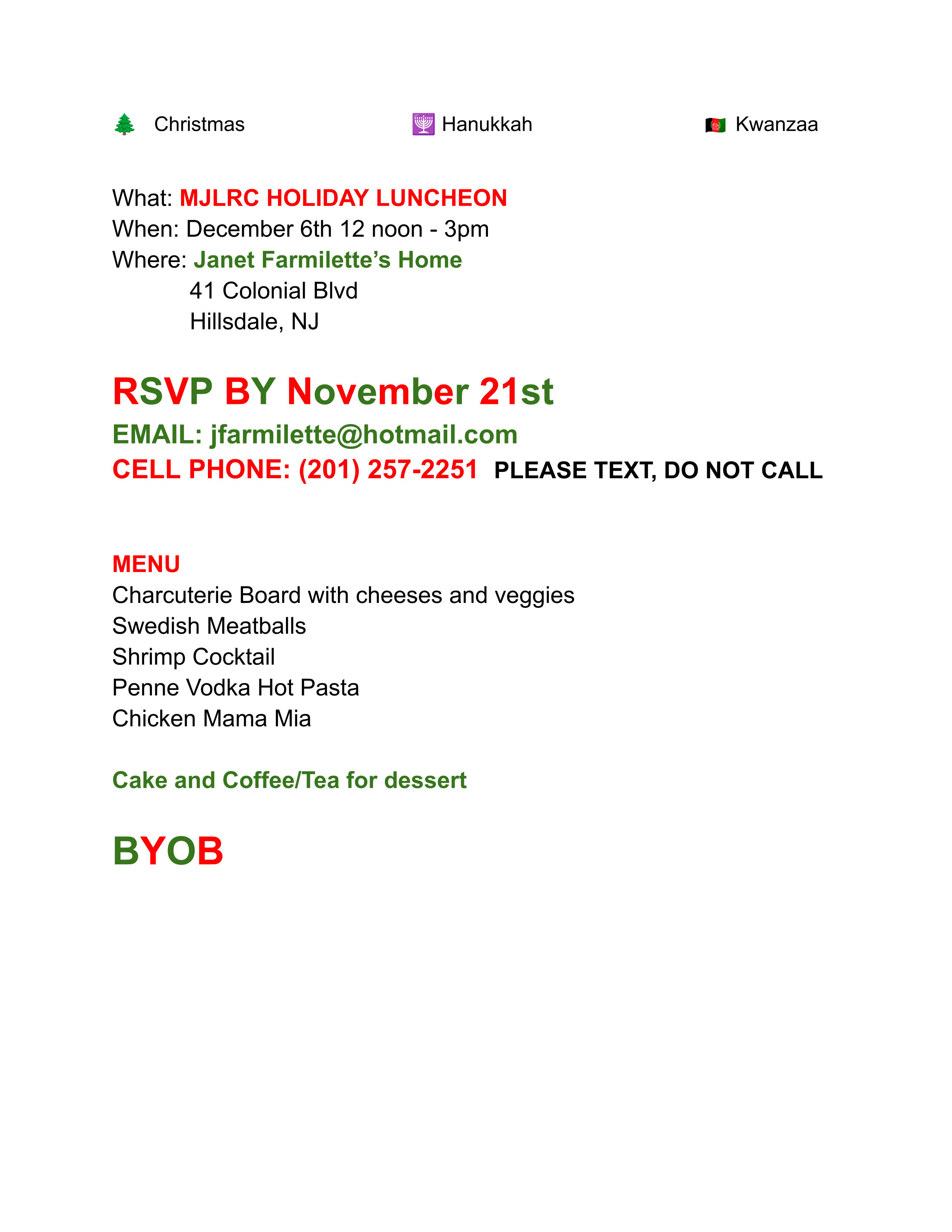 Located at: Janet Farmilette's House, 41 Colonial Blvd., Hillsdale, NJ, 07642    [View Map]